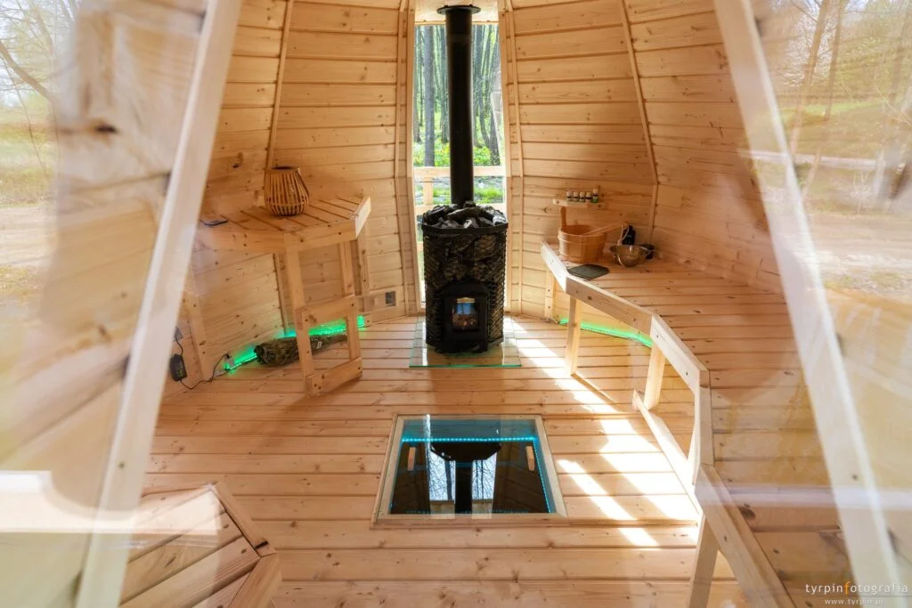To nie zwyczajna sauna. Dryfuje niczym łódź cieplna, tylko dla Was. Wewnątrz – jasne drewno, ciepło, które przenika, i właz, który możesz otworzyć, by schłodzić się prosto w wodzie. Czegoś takiego jeszcze nie widzieliśmy!