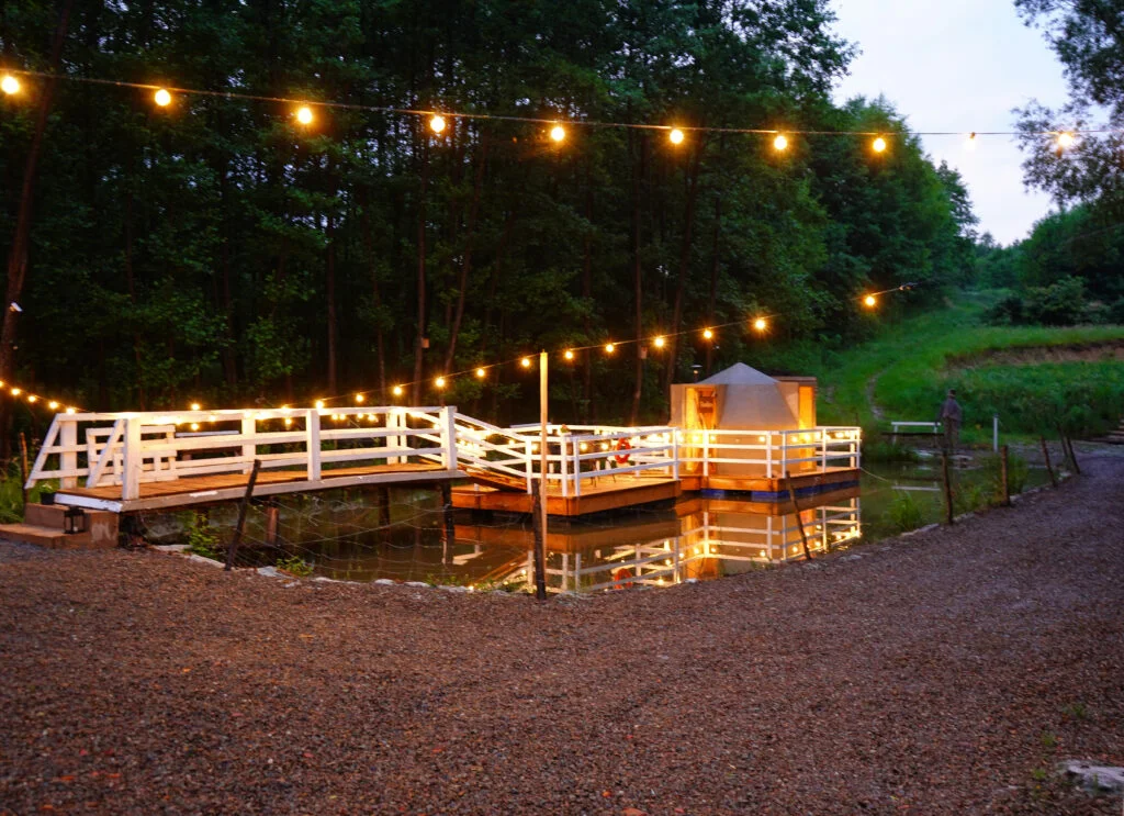 Wyobraź sobie wieczór, w którym świat zwalnia. Jesteś w domku, a dokładnie to w Bunkier House pośród łąk i lasów. Wszystko tu szumi spokojem, aż wreszcie dostrzegasz ją: saunę, która płynie po stawie jak tajna eskapada do krainy ciszy.